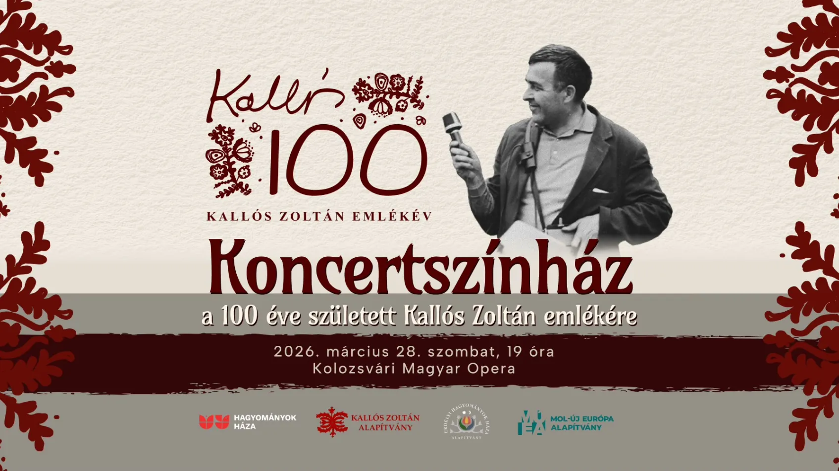 A Kallós 100 egy 90–100 perces koncertszínházi előadás, amely Kallós Zoltán életművét és kulturális örökségét állítja középpontba. A műsor zene, tánc, narráció és vetített archív anyagok segítségével idézi meg gyűjtőmunkáját és hatását a magyar népzenei és néptáncos hagyományra.