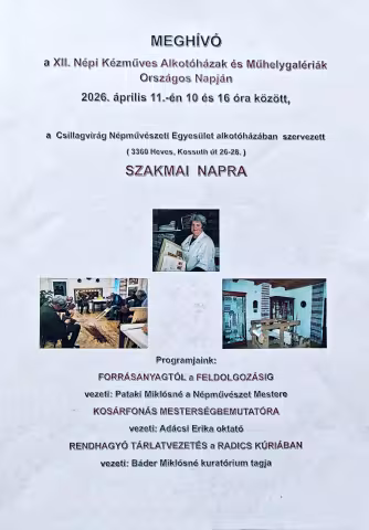 A XII. Népi Kézműves Alkotóházak és Műhelygalériák Országos Napján, a Csillagvirág Népművészeti Egyesület alkotóházában szervezett szakmai nap.