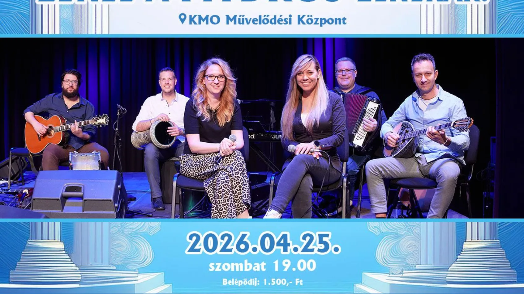 Április 25-én, szombaton 19.00 órától hamisítatlan görög hangulat várja az érdeklődőket. A Mydros zenekar élő koncertjén felcsendülnek a mediterrán dallamok, hogy egy estére a görög zene világába repítsék a közönséget.