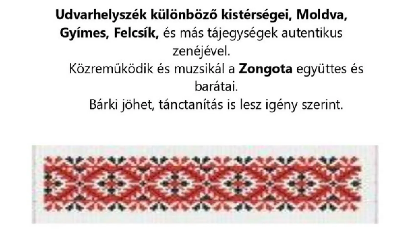Udvarhelyszék különböző kistérségei, Moldva, Gyímes, Felcsík, és más tájegységek autentikus zenéjével.