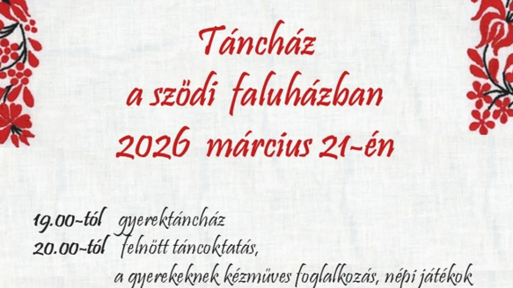 Márciusban rendezzük meg tavaszi táncházunkat, melyre minden táncoslábút szívesen látunk a környékről!